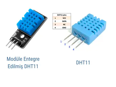 DHT11 bir modüle entegre edilmiş olarak ya da sadece sensör olarak alınabilir.