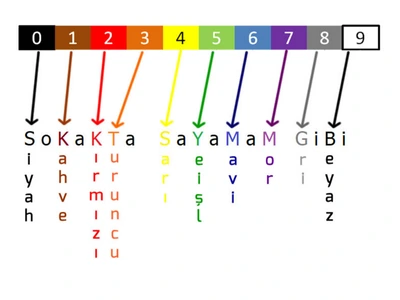Yukarıdaki tablo renklerin hangi sırayla ilerlediğini ve hangi sayıya karşılık geldiğini gösteriyor. “SoKaKTa SaYaMaM GiBi” cümlesi renk sırasının kodlanmış halidir ve hatırlamayı kolaylaştırır. Bu cümledeki sessiz harfler renklerin baş harflerini ifade eder.