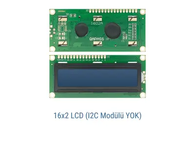 • 16×2 LCD: En popüler olanıdır. 16 sütun ve 2 satır olmak üzere toplam 32 karakter gösterir.