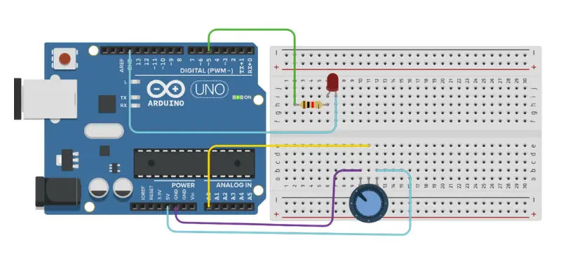 Bu projede led’in bağlı olduğu pin PWM pini olmalıdır. Arduino Uno için söyleyecek olursak, 3, 5, 6, 9, 10 ve 11 numaralı pinleri kullanabilirsiniz.