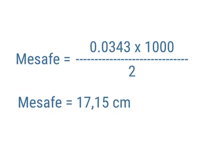 Ses hızı 343m/s(0,0343 cm/mikrosaniye) ve sensörden gönderilip geri alınan ses sinyali için geçen süre 1000mikrosaniye olsun.